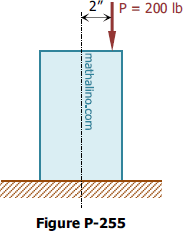 A short compression member carries an eccentric load P = 200 lb situated 2 in. from the axis of the member, as shown in Fig. P-225. In strength of materials it is learned that the internal stresses are determined from the equivalent axial load and couple into which P may be resolved. Determine the equivalent axial load and couple.